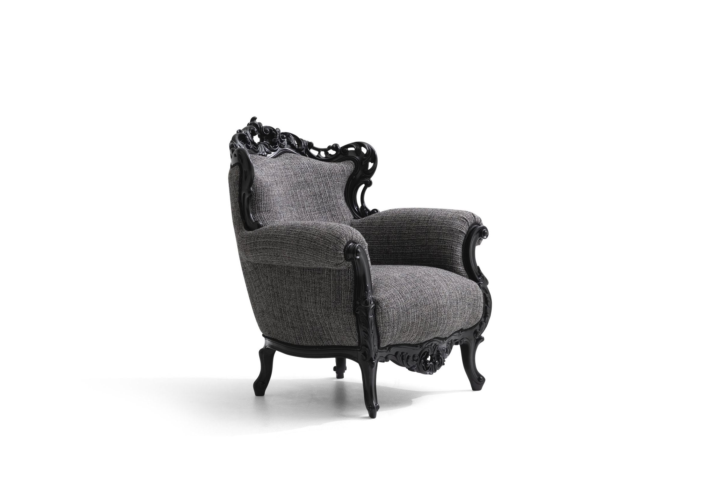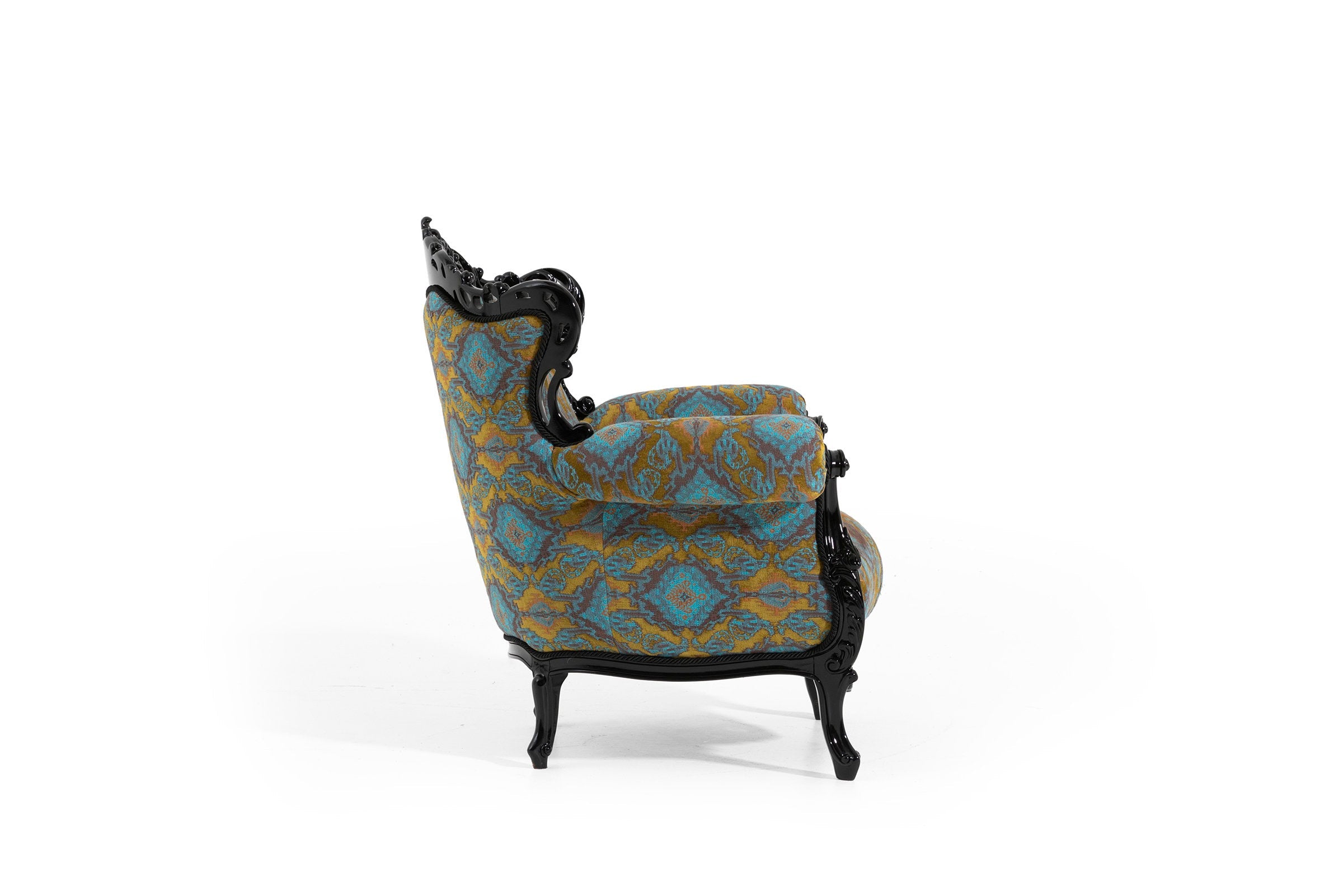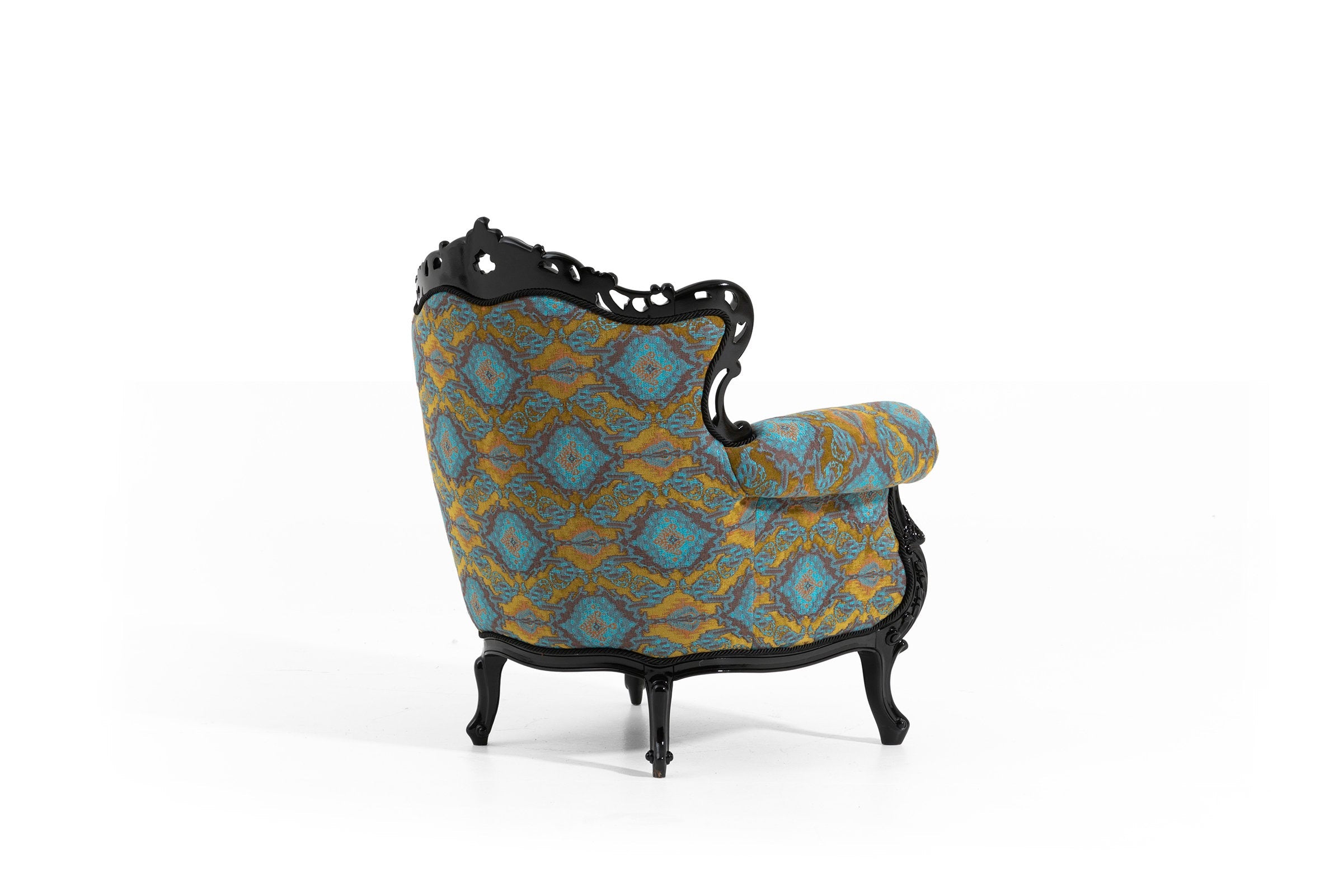 The frame of the armchair is made of polyurethane casting and natural wood materials that prioritise durability and robustness. This combination provides a long-lasting use as well as a timeless look. The specially designed fabric with soft texture and elegant patterns adds a characteristic elegance to Picasso armchair and attracts attention in any environment. This armchair, which will find a place in the centre of your home, is a perfect combination of comfort and elegance.